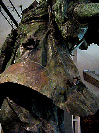 (Ampliar) - L'Àngel amb l'escultor Ramon Carrera, el calderer Pere Mulleras i el fonedor Francesc Xavier Alberch. 1968. Narcís Sans Prats. CRDI - Ajuntament de Girona.
