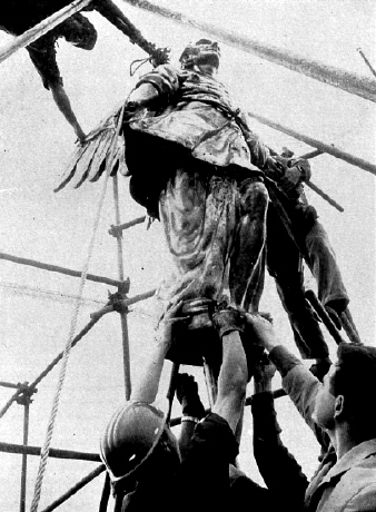 El 1959 va ser acabada la façana principal de la Catedral, i es va nomenar una comisió per dotar d'estàtues les fornícules buides fins aleshores, comisió que també va considerar la reparació de l'àngel, decapitat i força malmès, el que va aconsellar construir-ne un de nou.