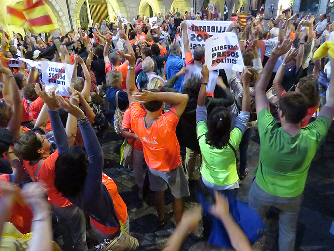 Assaig de la manifestació de l'11 de setembre a la plaça del Vi Assaig de la manifestació de l'11 de setembre a la plaça del Vi Assaig de la manifestació de l'11 de setembre a la plaça del Vi