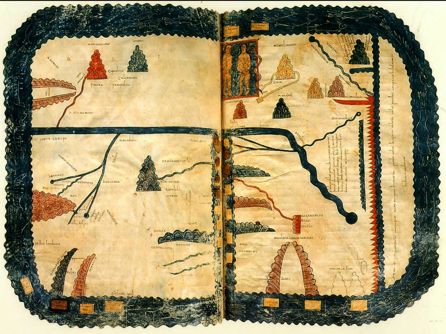 (Ampliar) - Beatus de Girona. Folis 54v-55r. Mapamundi. Viatges i facsímils