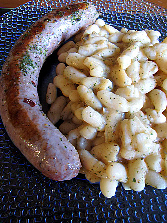 Botifarres dolces amb pomes. Reportatge fotogràfic i article sobre un plat parent d'aquest, però amb notables diferències.