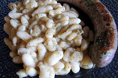 D'entre les múltiples variants de preparació del plat, segons els gustos personals, hem triat la següent: primer cal coure en aigua bullent les mongetes i escorrer-les. Es punxen amb una forquilla les botifarres i se salten a la paella per tots els costats, i es poden deixar que es coguin en el seu propi greix o afegir un raig d'oli d'oliva o, antigament, una mica de llard. S'aparten les botifarres i se salten les mongetes a la mateixa paella, amb el greix de les botifarres i a foc ben viu. S'afegeixen les botifarres per reescalfar-les al darrer moment. Es serveixen les botifarres amb les mongetes al costat com acompanyament.