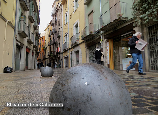 El carrer dels Calderers és, pel seu nom, propi de la Girona artesana dels temps medievals. Comunica el carrer de les Ballesteries i la pujada de Sant Feliu amb la plaça de Sant Feliu i el carrer de la Barca. Des de principis del segle XIII el que seria el carrer de Perolers i Calderers es troba documentalment sense nom, i anava des de la plaça de Sant Feliu fins al les Ballesteries. El 1535, el carrer s'anomenava "carrer dels Calderers", i perllongava l'eix principal del barri de Galligants fins al carrer de les Ballesteries. Als documents dels segles XIV a XVII acostuma a rebre el nom de "carrer dels Perolers", però a partir del set-cents la fórmula Calderers s'imposa rodonament, potser per influència del castellà.
