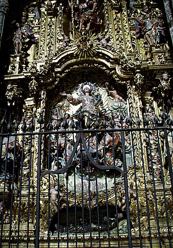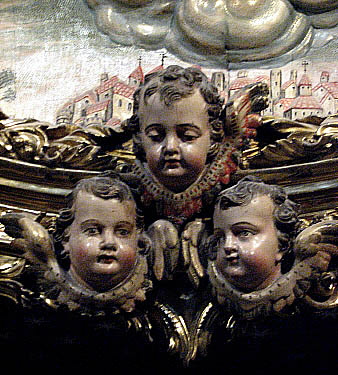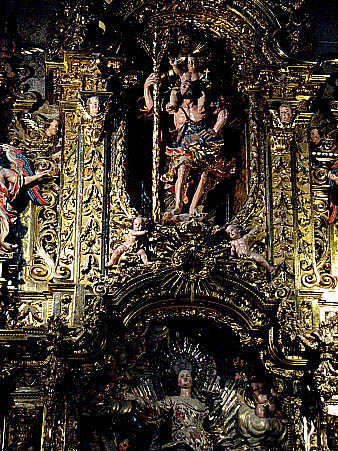 L'estructura del retaule de l'Assumpció està centrada en la imatge de la Mare de Déu, envoltada d'àngels que sostenen les lletanies marianes. A la part superior, una imatge de Sant Cristòfol, patró del canonge Cristòfol Rich, que va ser comitent del retaule, i als seus costats dos àngels.