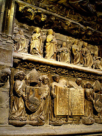 Detall de la tomba monumental del bisbe Bernat de Pau.