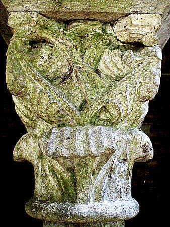 Capitell nº 38Capitell de tipus corinti amb decoració de temàtica vegetal, idèntica i continuada a les quatre cares. La composició és similar a la d'altres capitells del mateix claustre, amb un ordre inferior de fulles d'acant, i un de superior amb un conjunt de fulles i tiges encintades i cargolades. La simplicitat del traç bàsic de la decoració del capitell, i la seva repetició, donen una buscada sensació d'allargament de la peça.