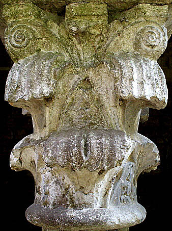 Capitell nº 40Capitell de tipus corinti amb decoració de temàtica vegetal, idèntica i continuada a les quatre cares. La composició és similar a la d'altres capitells del mateix claustre, amb un ordre inferior de fulles d'acant, i un de superior amb un conjunt de fulles i tiges encintades i cargolades. La simplicitat del traç bàsic de la decoració del capitell, i la seva repetició, donen una buscada sensació d'allargament de la peça.