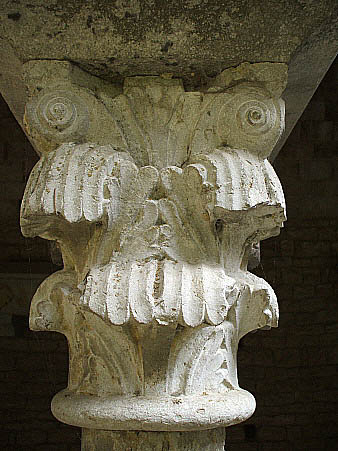 Capitell nº 43Capitell de tipus corinti amb decoració de temàtica vegetal, composta per dos ordres sobreposats de fulles d'acant, que queda rematat a la les quatre cantonades per volutes.