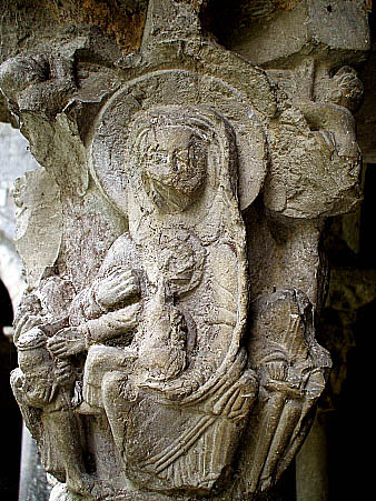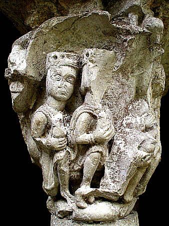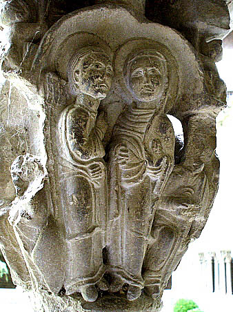 Al claustre de Sant Pere de Galligants s'hi pot veure un capitell amb la mateixa temàtica, romànic, i una composició semblant, així com també està relacionat amb les cares 4 i 5 del capitell 3b del Claustre del convent de Sant Domènec.