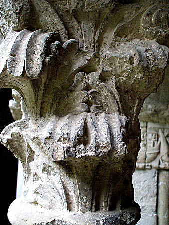 Capitell nº 64Capitell de tipus corinti amb decoració de temàtica vegetal, mixta, consistent en fulles d'acant disposada en diversos ordres, fulles alternades, i amb volutes a les quatre cantonades superiors.