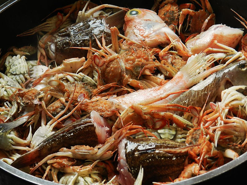 Si no disposem de crustacis el podem fer el brou amb peix de roca: serrans, escórpores, rates, aranyes, penegals, claus, etc...