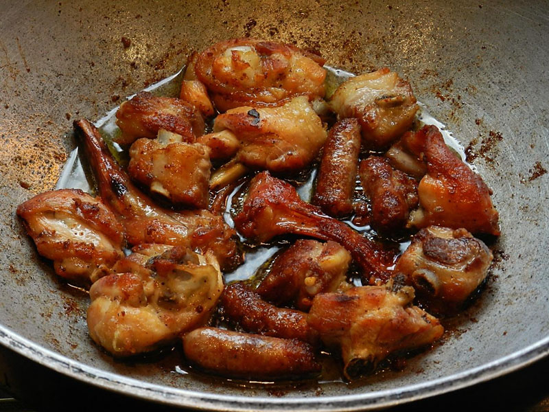 Afegiu-hi els trossos de carn prèviament salpebrats i aneu-los sofregint a foc mig.