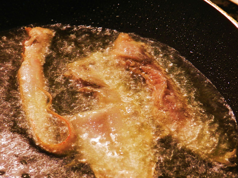 Els peixets també es poden arrebossar, passar per ou i farina, a la romana, amb tempura, però som del parer o bé de fregir-los, sense cap embolcall, com feien els pescadors, o bé d’enfarinar-los molt lleugerament i espolsar-los ben bé, així aconseguim que no s’enganxin entre ells i la finíssima capa de farina amb l’oli roent els protegeix que absorbeixin l’oli i resultin cruixents.