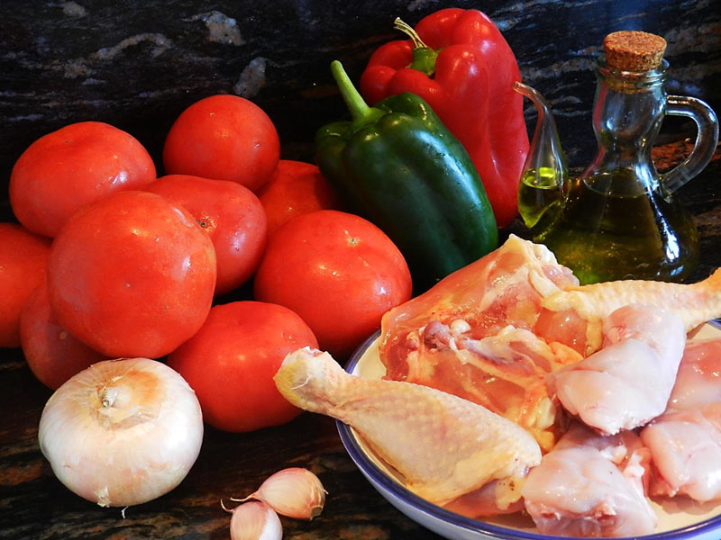 És molt important utilitzar tomates madurades al sol i no pas que hagin passat per càmeres, ni emprar tomates en conserva i encara menys salsa de tomata industrial. El resultat final no té comparació. Aprofitem aquests mesos de calor que és quan aquestes verdures també són més assequibles. En aquesta recepta hem fet servir pollastre i conill, una combinació que era habitual. Però la podeu fer només de pollastre o només de conill. També la podeu fer amb xai, sobretot amb la vena del coll, i si la fem amb porc era corrent fer-la amb costelló.