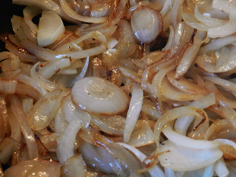 Si voleu, per intensificar el gust del plat final, abans d’abocar la ceba a la cassola, la saltegeu prèviament en una paella a foc ben fort un parell de minuts, per enrossir-la i donar-li una mica de color torrat (Foto).