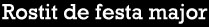 Hem de dir que cal anar amb compte amb el terme “rostir” per evitar confusions ja que, depenent de com i a on, es pot referir a diferents tècniques de cuina, i traduït al castellà, “asado” se sol entendre rostit al forn. En el cas del Rostit de Festa Major estem parlant d’un plat cuinat en una cassola, preferentment de terrissa, però podem fer-la en cassola de metall gruixut, sobre els fogons i combinant dues tècniques de cocció alhora. També podem fer-lo al forn, però no és la manera tradicional a casa nostra, pensem que a la majoria de les cases no en disposaven. Era costum rostir els talls “nobles”, cuixa i pit, i deixar els menuts –colls, ales, pedrers, potes, crestes- per fer un platillo, tot sovint amb bolets.