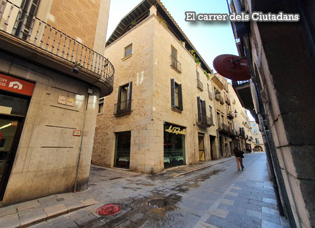 El traçat del carrer dels Ciutadans és el de l'antiga Via Augusta de la Girona romana, que de Roma arribava fins a Càdis, i que va esdevenir successivament camí reial de Barcelona cap a França i, fins als anys quaranta del segle XX, carretera nacional de Madrid a França. Això comportà una configuració de l'indret que durant molt temps va ser el centre neuràlgic de la ciutat, paper que es va anar diluïnt poc a poc malgrat la seva situació estratègica. Aquest carrer enllaça la plaça del Vi amb la plaça de l'Oli, i al llarg del seu recorregut lineal connecta amb diversos carrers i carrerons, el carrer de Joaquim Pla i Cargol (antiga travessia de Sant Josep), el carrer de la Llebre i la pujada de Sant Martí per la banda dreta, i el carrer de l'Arc i el carrer de Minali, per la banda esquerra.