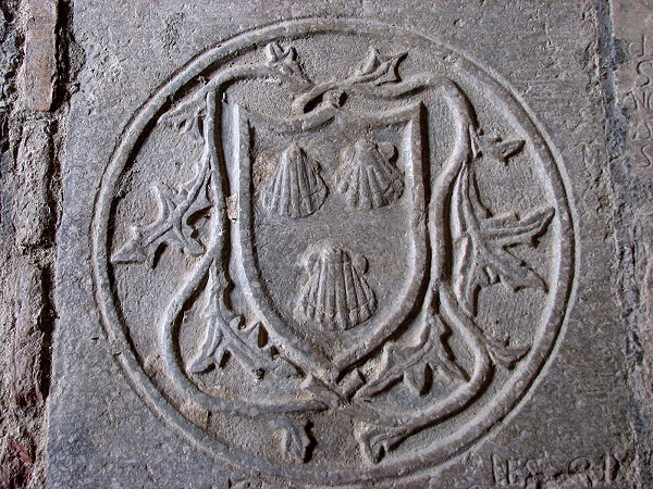 El claustre del monestir de Sant Daniel. Decoració heràldica d'una làpida sepulcral.