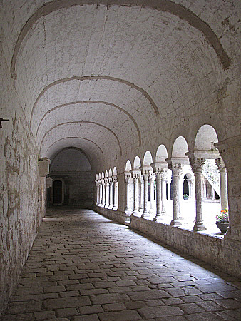 El claustre del monestir de Sant Daniel. Làpida sepulcral amb decoració heràldica.
