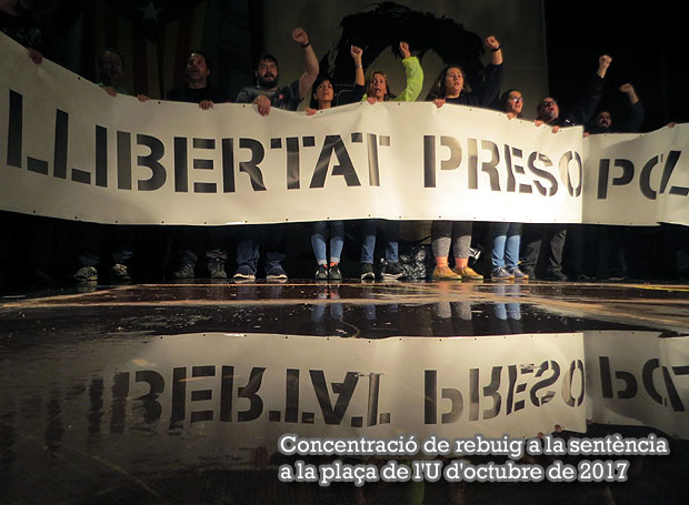 Desprès de conèixer-se les sentències condemnatòries als presos políítics emesa el dilluns 14 d'octubre de 2019, les protestes es varen materialitzar, a Girona, entre d'altres accions de rebuig, en una concentració a la plaça de l'U d'octubre de 2017.