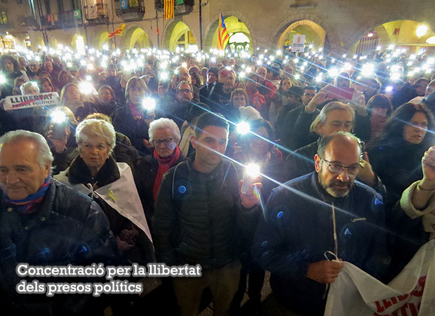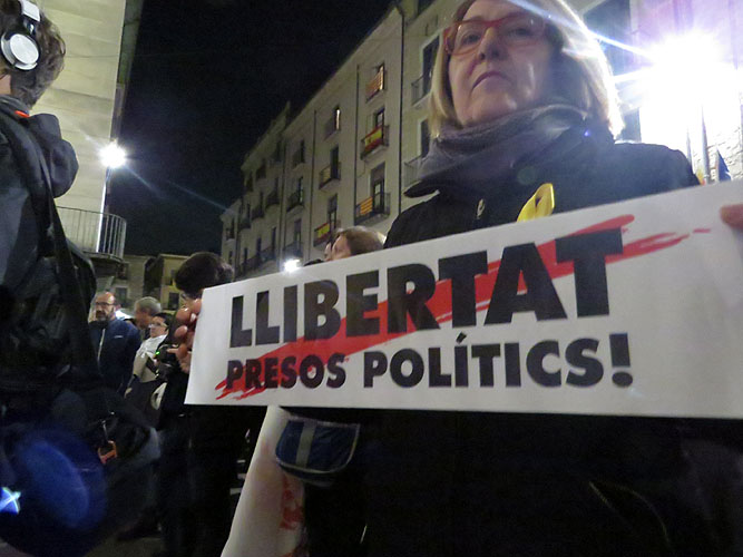 El 16 de novembre 2017 nombrosos gironins es varen concentrar a la plaça del Vi demanant la llibertat de tots els presos polítics, quan s'acomplia un mes de l'empresonament de Jordi Cuixart i Jordi Sànchez a la presó de Soto del Real, empresonats el 16 d'octubre per sedició, acusats de ser els caps de les manifestacions del 20 de setembre d'enguany davant la conselleria d'Economia. Durant el minut de silenci que s'hi ha fet, els concentrats varen mantenir encesos els llums dels seus mòbils, donant visibilitat al testimoni de les persones que s'hi havien concentrat.