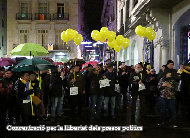 El dilluns 18 de desembre 2017, convocada per Ò:mnium Cultural i l'ANC, va tenir lloc a la plaça del Vi, davant l'Ajuntament de la ciutat, una concentració, que va reunir nombroses persones malgrat la pluja, a favor de la llibertat dels presos polítics. Durant la concentració el director de Temporada Alta, Salvador Sunyer, va llegir un manifest. Durant l'acte, que va finalitzar amb una interpretació de "El cant dels ocells" i el cant conjunt de tots els assistents de "Els Segadors", es varen enlairar diversos globus grocs amb missatges per als empresonats polítics.