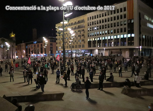 El dimecres 28 d'octubre de 2020, va tenir lloc una concentració d'unes 300 persones a la plaça de l'U d'octubre de 2017 per rebutjar l'operatiu desplegat per la Guàrdia Civil contra l'entorn del MHP Carles Puigdemont, amb una trentena d'escorcolls i detencions d'activistes, empresaris i alts càrrecs del Govern.