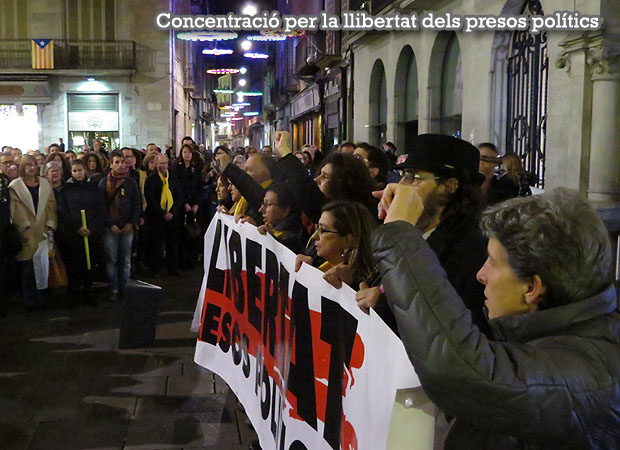 El dijous 4 de gener 2018, convocades per l'ANC i Òmnium Cultural, 1.500 persones es varen concentrar a la plaça del Vi per reclamar l'alliberament del vicepresident Oriol Junqueras, que el mateix dia va comparèixer davant del Tribunal Suprem. Durant l'acte, l'ANC va llegir un manifest recordant que "quatre homes de pau" continuen a la presó, i la regidora de l'ajuntament de Girona, Maria Mercè Roca, també va llegir text.