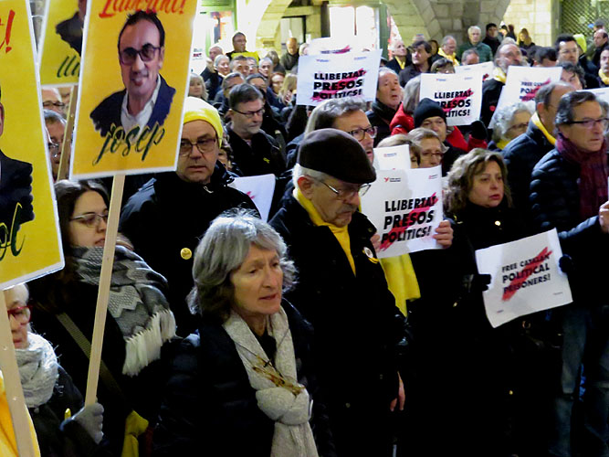 El dilluns 7 de gener de 2019, va tenir lloc l'habitual concentració per la independència i la llibertat dels presos polítics a la plaça del Vi, amb la participació com cada dilluns d'Albert Parareda, Marta Alsina, membre de la sindicatura del referèndum, també en causada, i la representació de la CUP (Lluc Salellas), ERC (Quim Ayats) I Pdcat (Eva Palau).