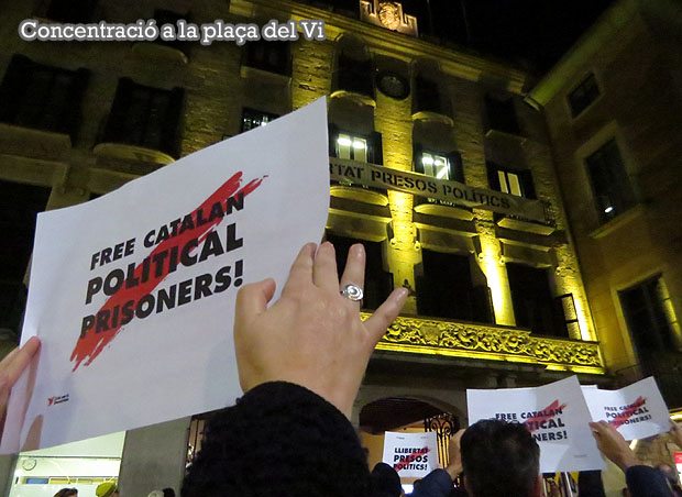 El dilluns 9 de desembre de 2019, va tenir lloc l'habitual concentració de cada dilluns per la independència i la llibertat dels presos polítics a la plaça del Vi. En aquesta ocasió, amb la participació de Justícia i Pau i la Coordinadora d'ONG Solidàries, amb motiu del Dia Internacional dels Drets Humans el 10 de desembre.