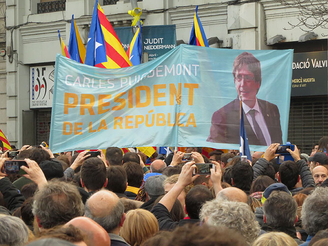 El diumenge 25 de març 2018, es varen concentrar davant la subdelegació del Gobierno d'Espanya a la Gran Via Jaume I 10.000 persones -segons dades de la Policia Municipal-, per expressar el seu rebuig a la detenció a Alemanya del President Carles Puigdemont i a l'empresonament dels líders independentistes. Hi varen fer parlaments els representants de la plataforma "Girona Vota", del CDR i el col·lectiu de joves independentistes "La Forja", tot abans de sortir cap a la sortida de Girona Oest per tallar l'AP-7.