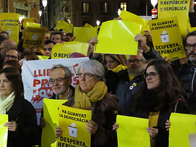 Concentració a la plaça del Vi de protesta pels tres mesos de presó de Jordi Sànchez i Jordi Cuixart Concentració a la plaça del Vi de protesta pels tres mesos de presó de Jordi Sànchez i Jordi Cuixart Concentració a la plaça del Vi de protesta pels tres mesos de presó de Jordi Sànchez i Jordi Cuixart