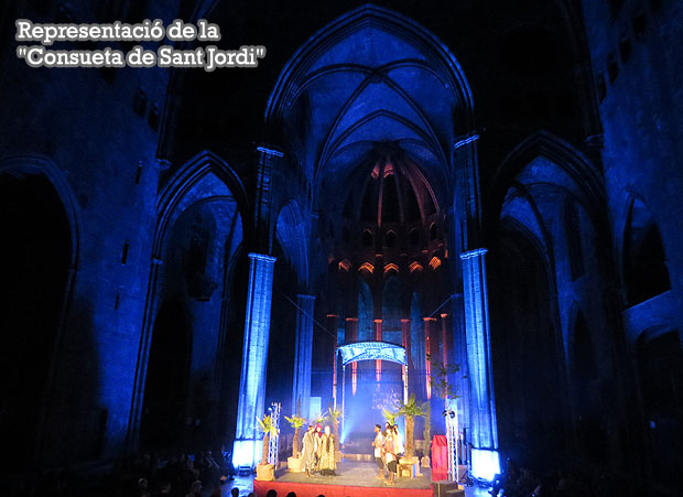 El dissabte 22 d'abril 2017 es va representar, a la nau gòtica de la Catedral de Girona, la "Consueta de Sant Jordi cavaller", un text mallorquí d'autor desconegut del segle XVI, d'un marcat caràcter didàctic i apologètic. En la representació hi han participat els actors Guillem Gispert, Robert González, Josep Maria Canaleta, Ivan Bustos, Gerard Martínez, Mamadou Diallo, Víctor Petit, Oriol Martí, Susanna Romero, Carla Ciurana i Guillem Fernández-Valls, sota la direcció de Martí Peraferrer. La música de l'orgue de la seu gironina ha estat tocada per Pau Riuró, i entre l'attrezzo s'hi ha inclòs un drac, dissenyat per Nuxu Perpinyà, que s'incorporarà al bestiari popular de Girona.