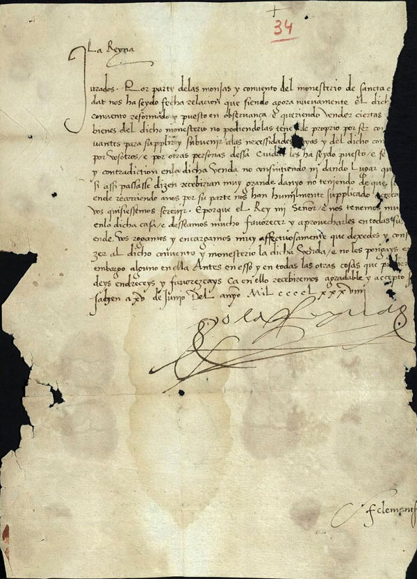 - 15 de juny de 1489. Isabel I de Castella als jurats de la ciutat de Girona. Els encarrega que no posin cap inconvenient a les monges i convent de Santa Clara en la venda d’uns béns per tal de poder fer front a les seves necessitats. Lletres Reials. Fons Ajuntament de Girona.
