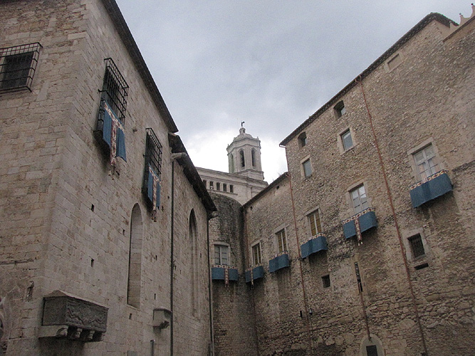 La processó de Corpus 2012. Finestres endomassades i el campanar de la Catedral