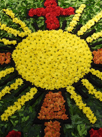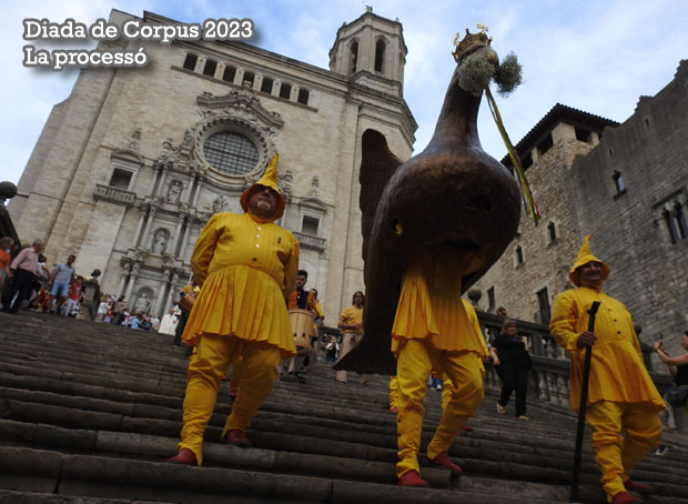Al llarg de la jornada, desenes de voluntaris de la dotzena de confraries que conformen la Junta de Confraries van engalanar els carrers del Barri Vell amb les catifes amb decoracions florals, com a preludi de la missa solemne que es va dur a terme a la Catedral, acabada la qual l'Àliga va fer el ball d'honor, i seguidament s'inicià la processó, que va desfilar fins a la Basílica de Sant Feliu.