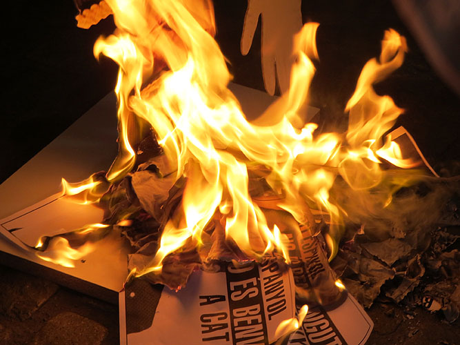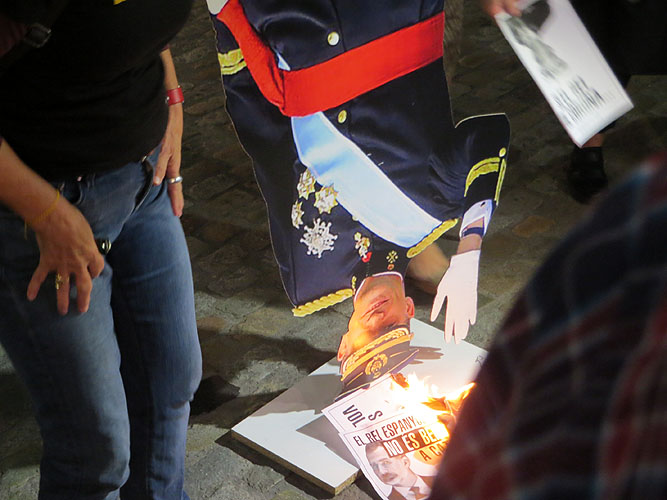 Crema popular de fotos del rei d'Espanya a la plaça del Vi sota el lema 'Ni rei ni corona' Crema popular de fotos del rei d'Espanya a la plaça del Vi sota el lema 'Ni rei ni corona' Crema popular de fotos del rei d'Espanya a la plaça del Vi sota el lema 'Ni rei ni corona'