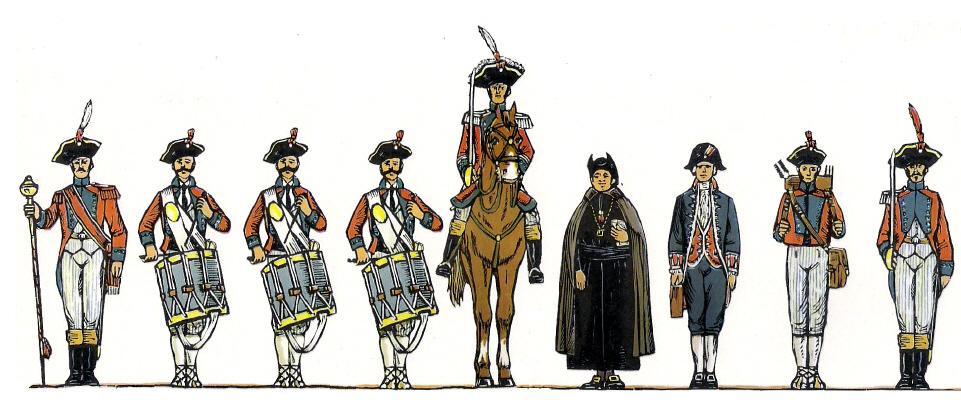 Batalló de Voluntaris d'Infanteria Lleugera de Girona. Dibuixos de Joaquim Pla i Dalmau. Uniforme de creació del cos, novembre 1791