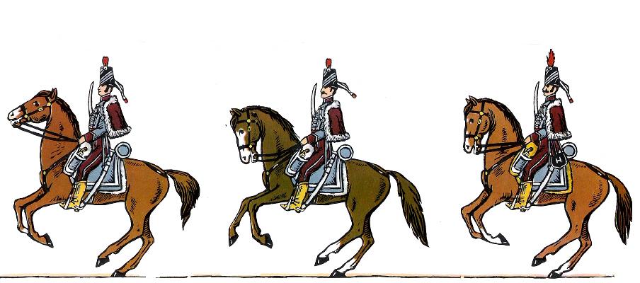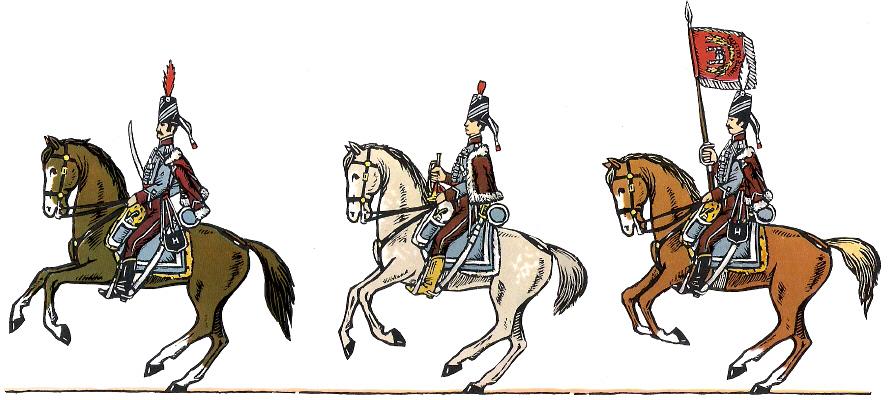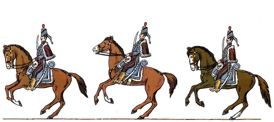 Regiment d'Hússars Espanyols, organitzat a Sarrià de Ter. Dibuixos de Joaquim Pla i Dalmau.