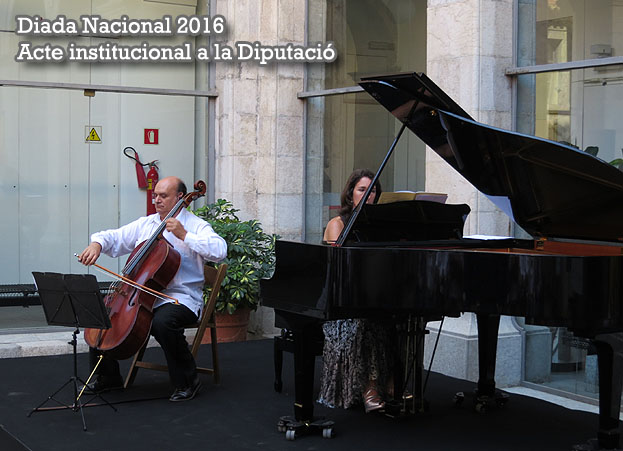 El diumenge 11 de setembre de 2016 va tenir lloc al pati de la Diputació de Girona el tradicional acte institucional, que des de fa sis anys organitzen conjuntament Generalitat, Diputació i Ajuntament de la ciutat. Hi varen participar amb els seus parlaments el vicepresident de la Diputació, Miquel Noguer, el delegat del Govern de la Generalitat a Girona, Eudald Casadesús, i l'alcaldessa de Girona, Marta Madrenas. L'acte de la Diada a Girona es va tancar amb una actuació dels professors del Conservatori de Música Isaac Albéniz amb interpretacions d'una sardana dedicada a Pau Casals, "Et recordem", "Mar plana", "El cant dels ocells" i, per acabar, "Els Segadors".