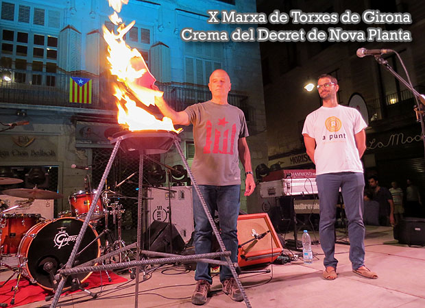 El dissabte 10 de setembre 2016, dins les activitats organitzades amb motiu de la Diada Nacional de Catalunya, va tenir lloc la X edició de la Marxa de Torxes de Girona, amb sortida a les escales de la Catedral, i que després del recorregut pels carrers del Barri Vell, va arribar a la plaça del Vi. Davant l'Ajuntament la marxa va acabar amb la lectura del manifest i la crema del decret de Nova Planta pel president de l'ADAC, Joan Sibill. Seguidament la cantautora empordanesa Rosa Pou va cantar Els segadors, i els Diables de l'Onyar van oferir un espectacle pirotècnic des del terrat de l'Ajuntament.