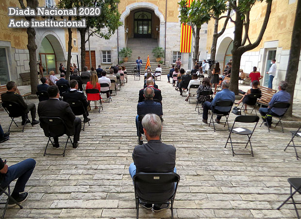 El divendres 11 de setembre de 2020 va tenir lloc al Pati de les Magnòlies, el tradicional acte institucional, que des de fa deu anys organitzen conjuntament la Generalitat, la Diputació i Ajuntament de la ciutat. Hi varen participar amb els seus parlaments el delegat del Govern a Girona, Pere Vila, l’alcaldessa de la ciutat, Marta Madrenas, i el president de la Diputació de Girona, Miquel Noguer. L'acte de la Diada a Girona es va tancar amb el cant de "Els Segadors".