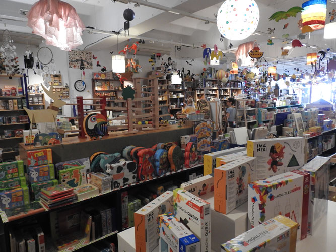 La botiga es va fer petita, o la varietat de productes molt gran, i varen trobar un nou local a l’altre costat del riu, al carrer de les Hortes, molt a prop de la Llibreria 22. Tenen joguines de sempre, des de titelles i baldufes, jocs de cartes i trencaclosques de tres dimensions, fins a jocs clàssics amb dissenys renovats. Totes les edats i tots els idiomes somriuen en aquest espai.