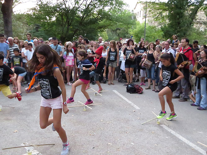 Reportatge fotogràfic dels balls infantils al pont de la font d'en Pericot: ball de bastons, L'hereu Riera, etc. 15 fotografies. |