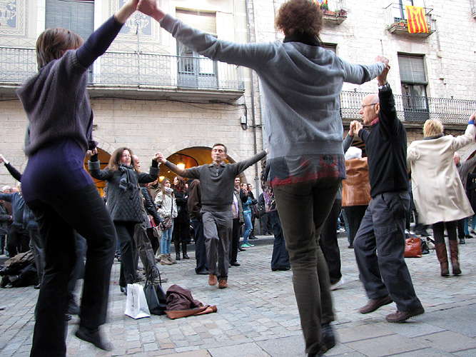 Síntesi: El dilluns 29 d'octubre, diada de Sant Narcís, va tenir lloc, a la plaça del Vi de Girona, una audició de sardanes a càrrec de la cobla La Principal de La Bisbal. Les rotllanes dels balladors es varen obrir al clos de la plaça, on varen dançar al ritme de tamborí i contrabaix, i melodia de tenora, tible, trompeta, trombó, fiscorn i flabiol. En aquest indret era tradició: que el gremi de pedraires, escultors en pedra i picapedrers, celebrés la festivitat dels seus patrons, els Quatre Sants Màrtirs de Girona (Sant Germà, Sant Just, Sant Paulí i Sant Sici), amb una ballada de sardanes davant el relleu dels sants, de la segona meitat del segle XV, que es troba en aquesta plaça.