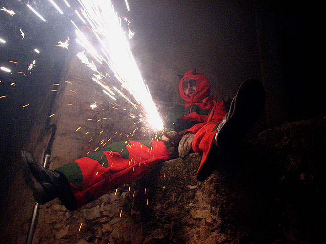 Va donar inici sota el Pont de Pedra, per seguir cap a la plaça del Vi, carrer Nou del Teatre i Auriga, per arribar, seguint el laberint de carrerons estrets del Barri Vell, a la plaça de Sant Domènec, on habitualment té lloc l'espectacle final.