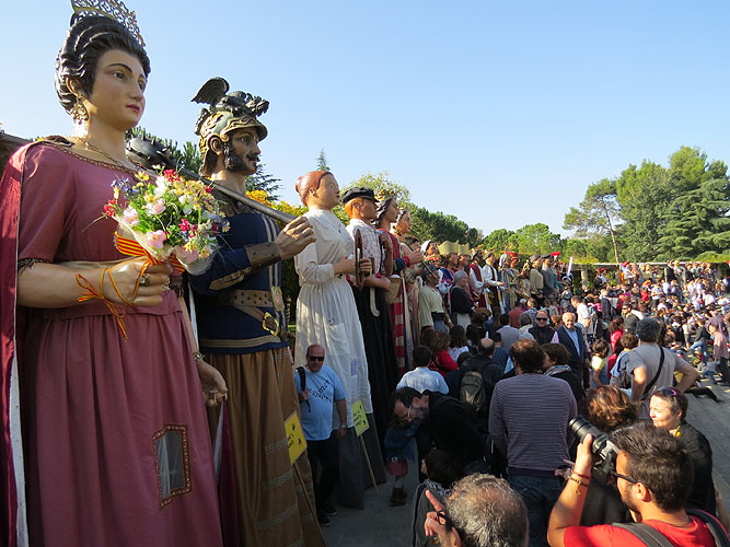 Fires de Girona 2014. La trobada de gegants: la plantada al Parc dels Migdia
