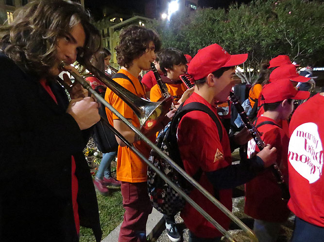 Les bandes van sortir des de diversos punts a les set de la tarda per acabar trobant-se a la plaça de Catalunya, des d'on van iniciar una cercavila musical fins a la plaça de Sant Feliu.