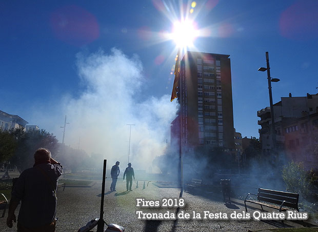 Dins la programació de les Fires de Sant Narcís 2018, el dissabte 3 de novembre va tenir lloc la Gran Tronada de la Festa dels Quatre Rius. Una gran traca, que va fer trontollar literalment la plaça, i que va consistir en 300 metres de petards instal·lats al perímetre i a l'interior de l'espai. Els últims artefactes en explotar van ser quatre morters en honor als Quatre Rius, seguits dels forts aplaudiments per part del públic.