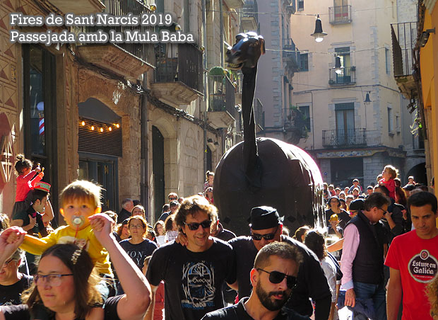 Dins la programació de les Fires de Sant Narcís 2019, el dissabte 2 de novembre va tenir lloc la passejada de Fires de la Mula Baba, acompanyada de la Mula Petita, des de la plaça del Pallol, passant pel carrer Ciutadans, Cort Reial i la Rambla de la Llibertat, per tornar al mateix indret, on es va representar la llegenda de les mosques de Sant Narcís pels titelles.